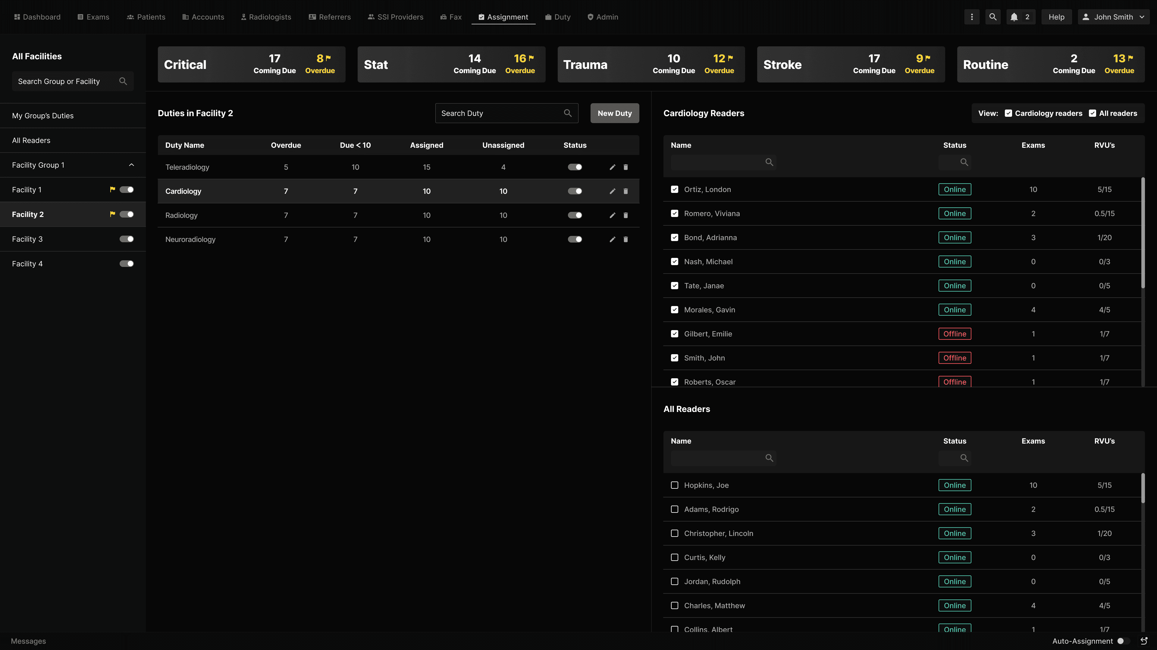 Intelligent automated creation and assignment of duties per organization and/or per facility.